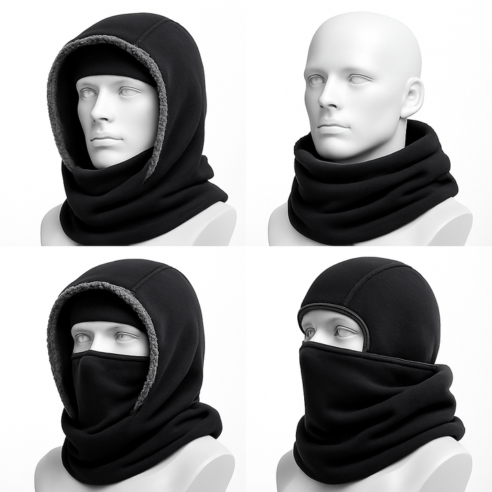 Embrace the winter chill with this versatile hood mask featuring integrated neck warmer and ear protection. Ideal for outdoor activities, it combines style and functionality while offering warmth and comfort.